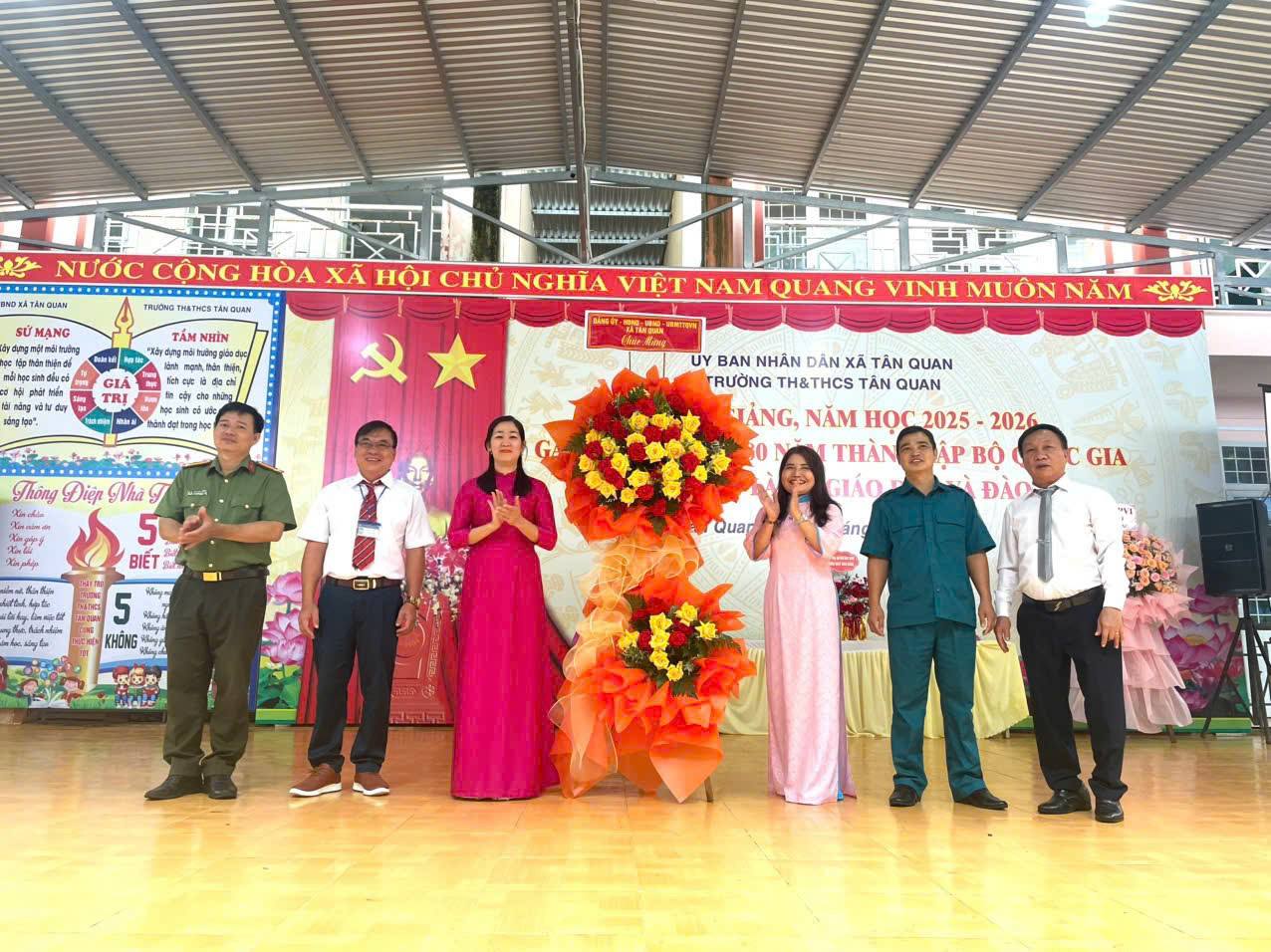 Sáng nay 5/9/2025 trong không khí tưng bừng chào mừng năm học mới trên cả nước, thầy và trò các trường học trên địa bàn xã Tân Quan đã tổ chức Lễ kỷ niệm 80 năm thành lập Bộ Quốc gia Giáo dục (nay là Bộ Giáo dục và Đào tạo) và lễ khai giảng năm học 2025 – 2026.