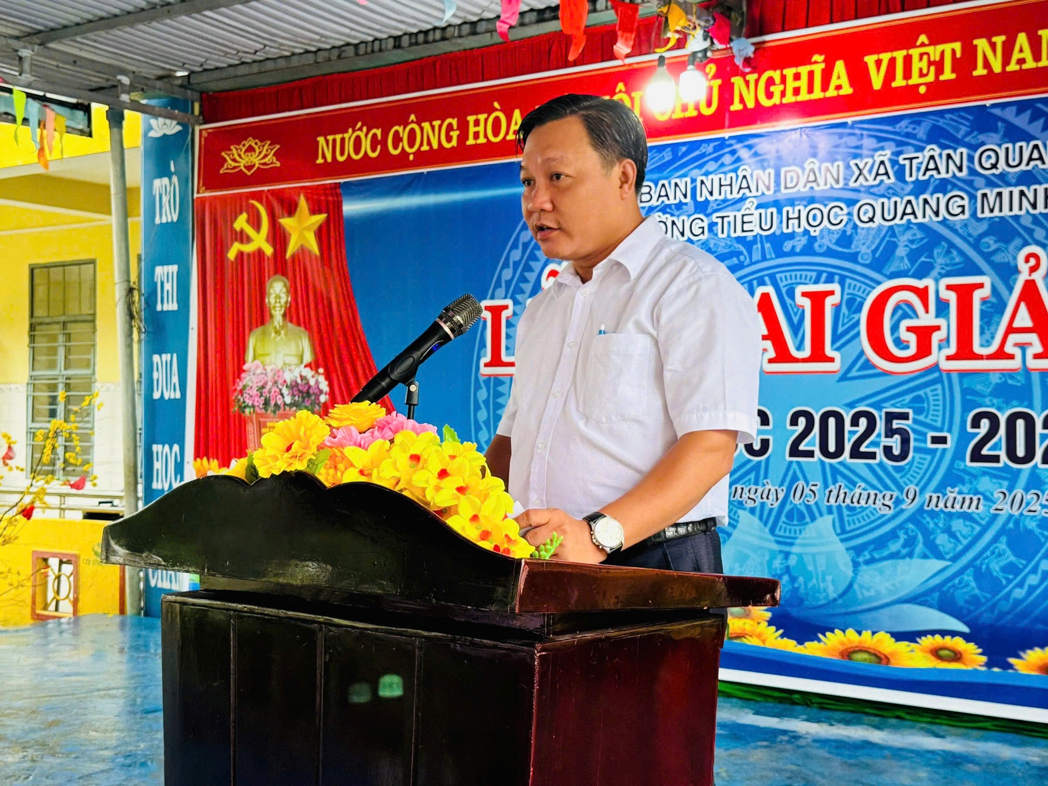 Buổi lễ có sự tham dự của lãnh đạo Đảng ủy, HĐND, UBND, Ủy ban MTTQ xã Tân Quan, cùng đại diện các ban ngành, đoàn thể, phụ huynh và học sinh. Các đại biểu đã gửi lời chúc mừng năm học mới, khích lệ tinh thần hiếu học và động viên thầy trò tiếp tục phấn đấu, đạt nhiều thành tích trong năm học 2025 – 2026. Năm học mới, ngành Giáo dục tiếp tục đẩy mạnh đổi mới phương pháp dạy học, ứng dụng công nghệ thông tin, nâng cao chất lượng giáo dục và bồi dưỡng thế hệ học sinh phát triển toàn diện về tri thức, đạo đức và kỹ năng sống mở ra một năm học mới đầy hi vọng và thành công cho thầy và trò xã Tân Quan.
